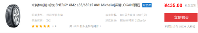 很多朋友在选胎的时候是茫然的,举几个栗子,看你躺枪了没有: 栗子1:换胎就换原配轮胎 大部分中低端车型为节省成本,原车轮胎都是选择低端品牌的低端型号,综合性能相对较差。(部分中低端车型的顶配型号采用的轮胎倒是不错的) 栗子2:看品牌买轮胎,例如:米其林舒适,马牌抓地好,固特异耐用,但不看具体的款式型号 只看品牌买胎是不科学的,事实上几乎每个轮胎品牌都有各种不同性能的舒适胎、性能胎、耐用胎。 栗子3:轮胎就是4个橡胶圈,随便换换就好,不值得多花钱 车辆的安全、舒适、操控都离不开轮胎,无论加速、过弯、刹车、减震、噪音甚至车身电子稳定系统的性能,都受轮胎性能影响和制约。 轮胎永远是车上最值得花钱升级的项目。由于2014年后轮胎价格的集体跳水,现在已经十分实惠,以提问中的185/65 R15为例,一条高端品牌好胎和低端品牌轮胎的差价也就是100-200元,但带来的性能差异却非常明显,所以我只推荐一些一二线品牌的轮胎。 (本文价格图片取自途虎养车网、天猫,仅供参考) 举个栗子: 这可能是市面上能买到最低(la)端(ji)的轮胎,特点:硬、颠、吵、滑(相对于大厂中高端胎),。。。。。价格是挺便宜,259一条。。。。。。快赶上一百多二百一条的摩托车胎了。
