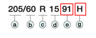 另外要注意的是: 替换胎的载重能力不得低于原配胎 替换胎的速度级别应等于或高于原配胎(冬季胎例外) (就是下图两个红框中的数值)