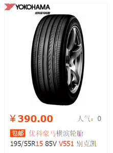 横滨/优科豪马V551 2011年上市,横滨的顶级舒适胎,而且是舒适胎中的战斗机!静音和舒适不算突出,但比原车胎会有提升,但同时运动性能突出,耐用度也是很OK的,提供15-18寸。如果你的买菜车不知道该换啥胎,又舍得花点小钱升级,建议换这货。 好吧,其实运动气质的横滨只有这么一款舒适胎——在内陆这款胎并不是很火,对岸的台湾车友山路过弯多,评价倒是非常高。均衡!思铂睿、杰德、卡罗拉、雷凌、昂科塞拉……高配的原配轮胎! 而且最重要的是——这货真心不贵啊!!!