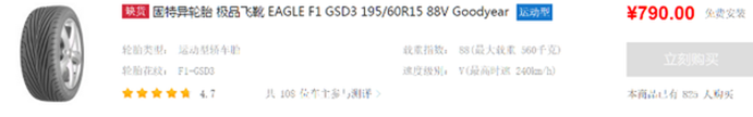 固特异Eagle F1 Directional 5单导向 2011年上市,固特异的次顶级高性能胎,路感直接硬朗……效果立竿见影,但如果你不能忍受噪音增加、减震变硬,别试!不同尺寸的差价范围比较大,要多对比。 上面还有一位大哥Eagle F1 Asymmetric 2 “弯道之王”,保时捷、GTI原配车胎,但只提供17寸以上尺寸,单导向的这款就平易近人多了,关键是颜值高啊,“人”字形胎纹,一看就知道高性能。提供15-20寸。