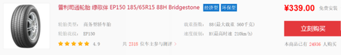 普利司通 绿歌伴 EP150 大品牌的选择可以看看普利司通绿歌伴,上一代产品EP100A,国内外的测试都玩不过AE01,但节油性能更好一点点,价格也贵一些。2013年上市,EP150配套日产新天籁、骊威、启晨晨风纯电动车、普锐斯PHV,提供14-16寸。