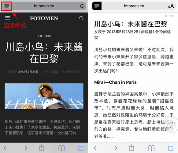 打开 Safari,进入想截图的页面,如果页面允许的话,最好开启阅读模式,视觉上会更简洁。