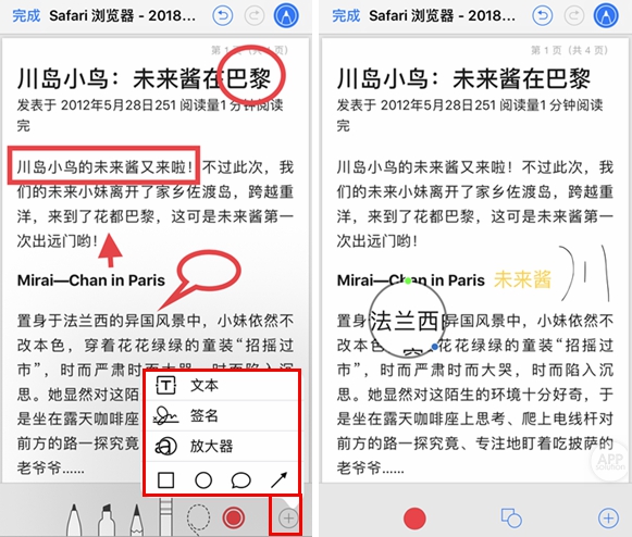 还可以添加文本、签名、放大器和方框箭头。