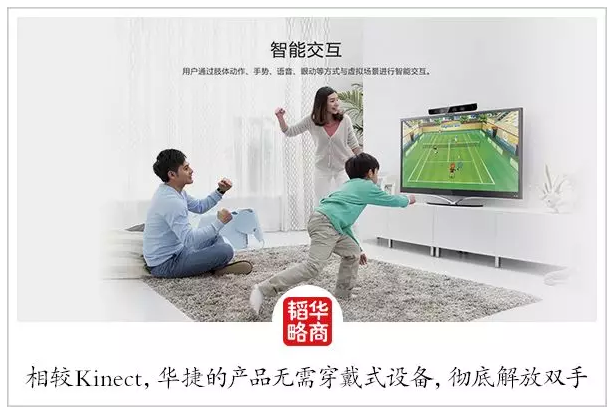 在华捷艾米,我们看到了这些场景: 一位测试员正对着屏幕玩各种体感游戏,从保龄球、乒乓球到跳舞机,不同于微软的Kinect之于Xbox,他是“裸身”游戏,身上没有任何体感设备。唯一的“载体”,是电视机下方一个内置了华捷艾米AR芯片的白盒子。