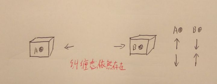 当我们把两个电子分开,放到两个很远很远的地方,这两个电子的这种关系依旧会存在,当我们测量其中的一个电子,发现它比如是上旋的时候,那么我们立刻知道,遥远另一个地方的那个电子一定是下旋的。