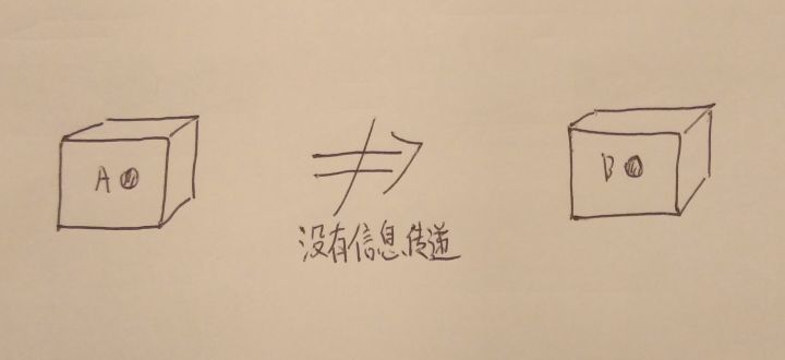 比如,盒子里有一个硬币,它可以是正面向上,也可以是反面向上,在打开前我们是不确定的。 然后我们打开盒子,我们眼睛看到的盒子硬币反射出来的光就是一个信息,因为它可以让我们消除正反面的不确定性,让我们得到一个确定的结果。 通讯最重要的要素就是信息,所以如果这个过程中没有涉及到信息的传递,那么就不能称为通讯。 而我们知道,信息传递的介质,光,声音,引力波等等都是以小于等于光速的速度传播的,这就是为什么说信息传递的速度要低于光速了。 什么是量子纠缠?