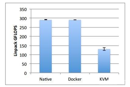 其次,openstack能够以10台/min的速度创建虚拟机,在docker面前就弱爆了,因为docker是利用宿主机的系统内核,所以可以做到在几秒钟之内创建大量容器,它们的启动速度是在数量级上的差距。 最后找了一个IBM测试案例,关于计算能力的,对于kvm为什么会有这么大的性能损失,一方面是因为虚拟机增加了一层虚拟硬件层,运行在虚拟机上的应用程序在进行数值计算时是运行在Hypervisor虚拟的CPU上的;另外一方面是由于计算程序本身的特性导致的差异。虚拟机虚拟的cpu架构不同于实际cpu架构,数值计算程序一般针对特定的cpu架构有一定的优化措施,虚拟化使这些措施作废,甚至起到反效果。比如对于本次实验的平台,实际的CPU架构是2块物理CPU,每块CPU拥有16个核,共32个核,采用的是NUMA架构;而虚拟机则将CPU虚拟化成一块拥有32个核的CPU。这就导致了计算程序在进行计算时无法根据实际的CPU架构进行优化,大大减低了计算效率。