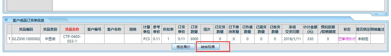 :外购成品可不可以在销售订单中自动转换为采购申购单?要如何操作呢?![]() 可以,参看以下操作,进入点晴ERP系统-》销售管理-》销售订单管理-》销售明细查询: 1、选择需要转的销售订单,点击 查看 2、如果有 新增申购单 的权限,则会出现转申购单按钮。点击该按钮即可以自动复制成为一张新的申购单,在采购管理-》申购管理中就可以找到这个申购单了。 点晴模切ERP更多信息:https://moqie.clicksun.cn,联系电话:4001861886 该文章在 2018/5/10 0:01:08 编辑过 |