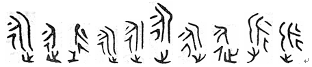 由人、彳组成,人面仍然向右,省去了点。 金文反写的永字写做: