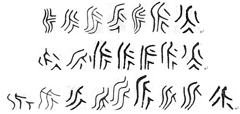 也由三部分组成:彳、人、两点或三点。点表示血液,所以甲骨文永也是脉的本字。 写做: