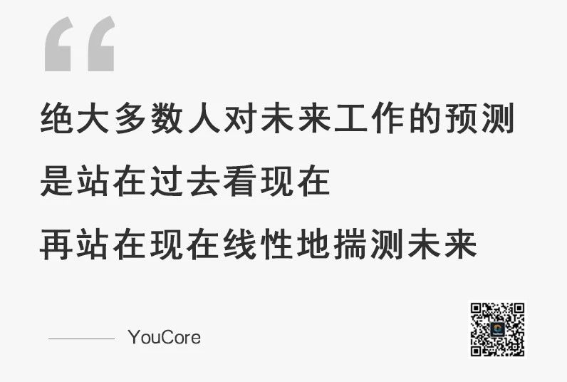 文 / 王世民 深圳尔雅总裁 │ YouCore创始人 01人类从来就不缺“先知”式的预言。 到了如今这个变化未定的时代,加上网络传播的便捷性,各种“先知”式的预言更是层出不穷。 对“做什么方向的工作才有未来?”这种具备天然预测属性的问题,更是预言多多。 有人预测从事大数据会有未来,有人预测做人脸识别赶上AI的潮流才有未来,甚至有人说只有干艺术才有未来,因为这是最不容易被机器取代的。 其实这些都是线性趋势下的预测,可能对,但更可能错。 这就像《黑天鹅》里提到的“火鸡幸福指数”。 假设你是一只火鸡,被农夫养在美国的农场。在过去的120天里,你都很幸福,因为农夫每天都给你吃的。 所以,随着时间的推移,你的幸福指数线性上升,你认为这种幸福会永远地延续下去。但很不幸,明天就是复活节了(复活节要烤火鸡吃),因此火鸡的幸福指数戛然而止。 绝大多数人对未来工作的预测,其实就跟这只火鸡一样,站在过去看现在,再站在现在线性地揣测未来。