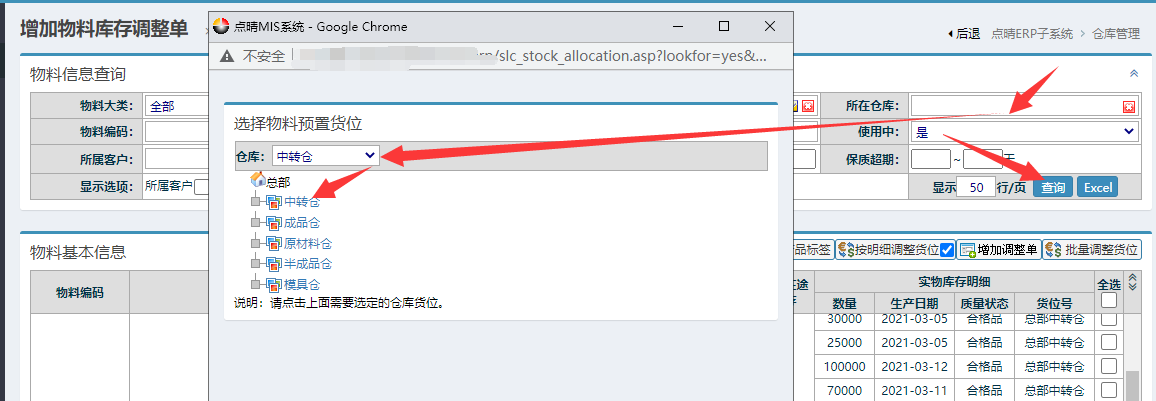 点晴模切ERP批量调整现有库存货位到其他仓库操作指引