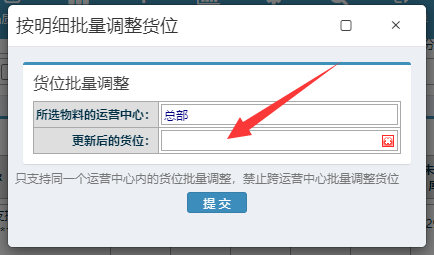 弹出下图页面,点击选择调整后的货位,点击提交即可: