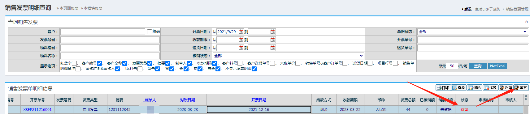 :ERP销售发票审核操作