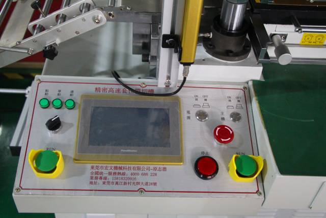如下图这台模切机中有两个绿色按钮,只有操作员把产品放到相应的位置以后,必须双手同时按下两个绿色按钮模切机才会运作。两个按钮相距特别远是为了防止操作员图方便用单手或单手加肘弯去操作。