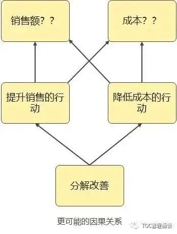 如果提升利润,公司就定下分别提升销售额和降低成本的目标。这种想法提升销售的行动只会提升销售,降低成本的行动只会影响成本,但这种想法大多时候是错误的。