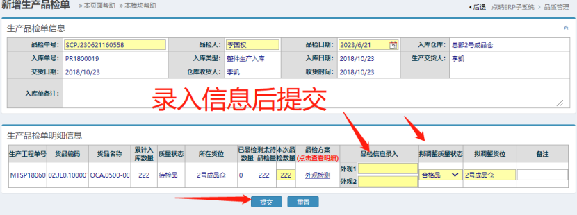 :点晴ERP-新增生产成品品检入库单![]() 1. 点击进入 如下图: 2. 点中需要增加品检的物料,再点击增加品检单 如下图: ![]() 3. 录入信息后提交即可 如下图: ![]()