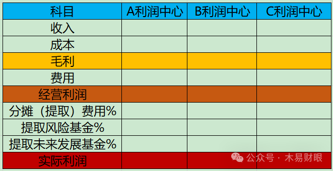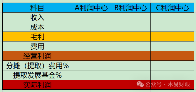 那如果管理费用不分摊给利润中心,总部仅仅作为成本中心的情况下该如何处理呢。 我知道有人会说,肯定得分摊,不分摊怎么行,总部那么多人的费用不都是为了服务各利润中心的吗,如果不分摊,总部的费用怎么办呢? 解决问题永远不是只有一条路可走,而是一条路如果有困难有障碍那就换一条,最终条条道路通罗马。 我们要明白,利润中心通常有二层利润。 一层是直接经营利润。就是我们常说的收入-成本-费用之后的直接经营利润,这是衡量一个利润中心是否有价值的重要体现。 ![]() 另外一层是实际利润。是拿经营利润减去分摊费用或是总部从直接经营利润中提取一定比例公司基金后的利润。 拿经营利润减去分摊费用或是总部从直接经营利润中提取一定比例公司基金后的利润就是实际利润。 ![]() 既然都是拿直接经营利润要减去一部分总部费用,那分摊费用和提取费用又有什么区别呢? 区别有三个方面。 一是,分摊和提取会导致利润中心的心理感受会不一样。 二是,分摊和提取之间总部从成本中心变成了利润中心。 三是,分摊操作繁琐利益不好统一提取更好统一目标。分摊和提取会导致利润中心的心理感受不一样。 看似最终都是要减少利润,但是减的方法一样,利润中心的感受是不一样的。 分摊在他们看来就是强压的任务,不摊也得摊,而如果是提取,直接按一个比例提取,那则是贡献之后上缴,感受一个是被迫一个是主动。 同时,在分摊和提取之间,总部也从成本中心顺利地变成了利润中心。 原来分摊的时候总部是没有收入的,就是单纯的成本中心,只花钱不挣钱,但凡花一分钱都有无数双眼睛在盯着。 现在提取的时候总部也变成了利润中心,有提供平台服务和赋能服务的收入,有自己的成本费用,可考核可衡量。 如果要把费用分摊下去操作繁琐,同时利益不好统一,而按比例提取相对会更好统一目标。 分摊费用的时候要公示管理费用的组成类型,要区分利润中心的级别和类型,要确定分摊原则,要提前铺垫和共识,同时过程中时时跟进。 按比例提取费用操作相对简单一些,确定比例提取就好,而且提取的原因是因为提供了平台服务和赋能服务,同时还要用于公司未来发展储备基金,更好统一目标。 各利润中心的利润还可以再分层,第一层从利润中心的直接经营利润中只提取总部的平台和赋能费用,再从各利润中心实际利润中提取风险基金和未来发展基金,剩余的才是各利润中心真正可用于分配的利润。 ![]() 风险基金和发展基金要公开透明,提取多少,用于哪里,让各利润中心觉得总部确定是在用这些钱为了未来的发展在做规划做事情。 任何做法都有两面性,分摊有分摊的难度,提取也有提取的阻力。 但无论哪一种,都少不了提前铺垫沟通,统一目标和方向,考虑大多数人的利益和角度,平衡过渡去推进而不能激进式推进。 管理没有对错,只有合适与不合适,用好用对了效果倍增,用不好用错了影响一大片,时机重要,方式也很重要。