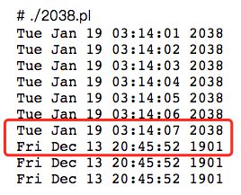 使用脚本模拟系统时间,会出现时间的跳变(平台 Debian GNU/Linux (内核 2.4.22))丨William Porquet/deepsky.com 对于很多电子设备而言,这是个毁灭性的打击。文件的创建与修改、应用软件的运行、网络系统的同步……时间作为一个关键数值,在整个电子系统里起着绝对重要的作用。因此有一阵子苹果手机的语音助手Siri,还把这一天当成了“世界末日”。为什么是这一天?Siri回答中的关键词也给出了答案。