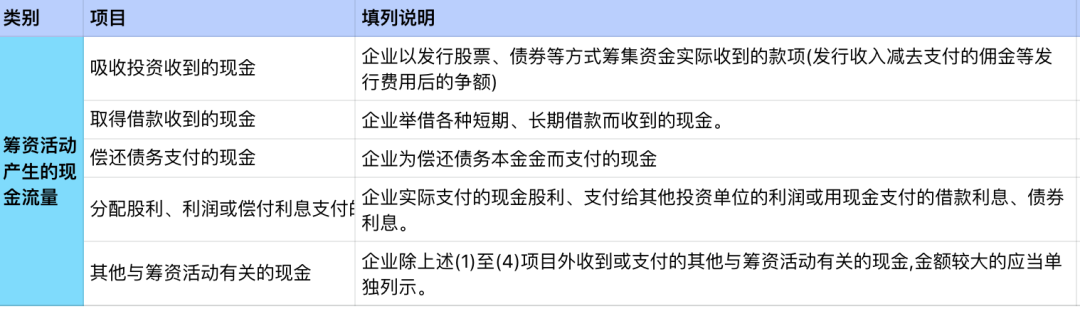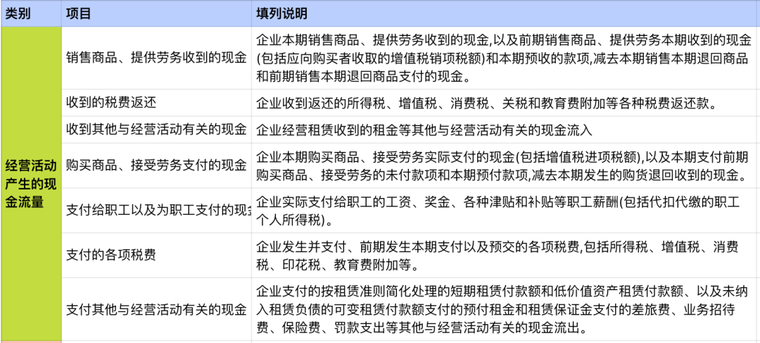 我国企业现金流量表采用报告式结构,分类反映经营活动产生的现金流量、投资活动产生的现金流量和筹资活动产生的现金流量,最后汇总反映企业某一期间现金及现金等价物的净增加额。我国企业现金流量表的格式如下图所示:三、现金流量表的填列