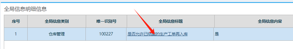进入界面后,搜索“已结案”,找到“是否允许已结案的生产工单再入库”明细栏,点击对应字样链接进入