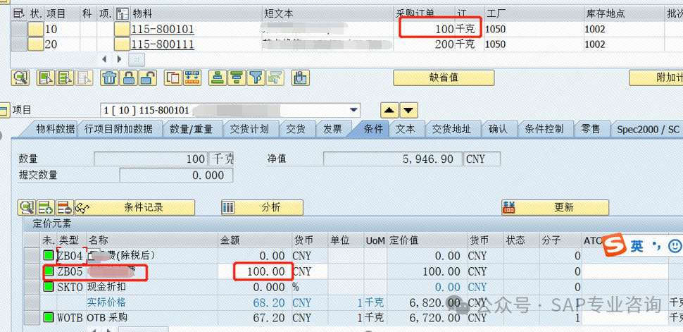 在《采购附加费用处理方式小结》一文中,对比如采购过程中发生的运费、关税、保险费、装卸费等常见的费用条件总结了SAP中几种处理方式。其中通过条件类型在采购订单计提这种情况适用于比较容易计算的附加费用,通常根据采购价格的一定数量比例进行计算。 客户这里遇到这样的业务场景,采购物资时候,费用类型的价格条件是固定金额,例如开模费不是根据收货数量的多少来计算,而是下单一次不管收货数量多少都是固定的开模费用。系统是否可以配置固定金额的价格条件呢?