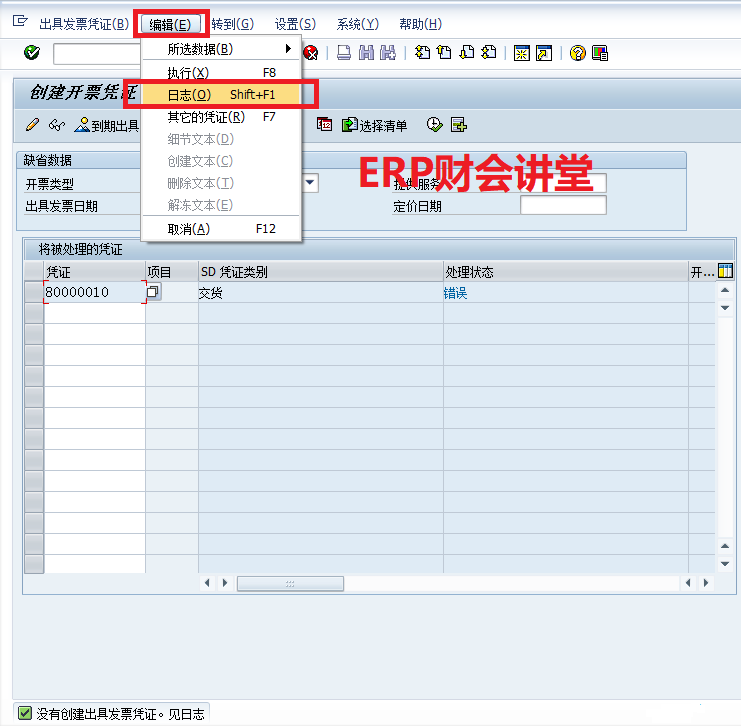 [点晴模切ERP]SAP软件 VF01出具发票的错误分析