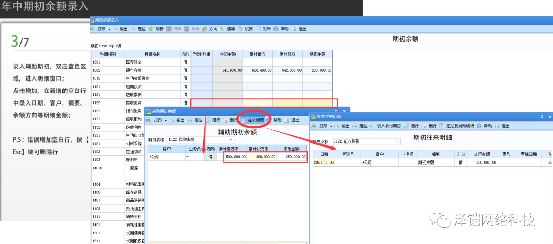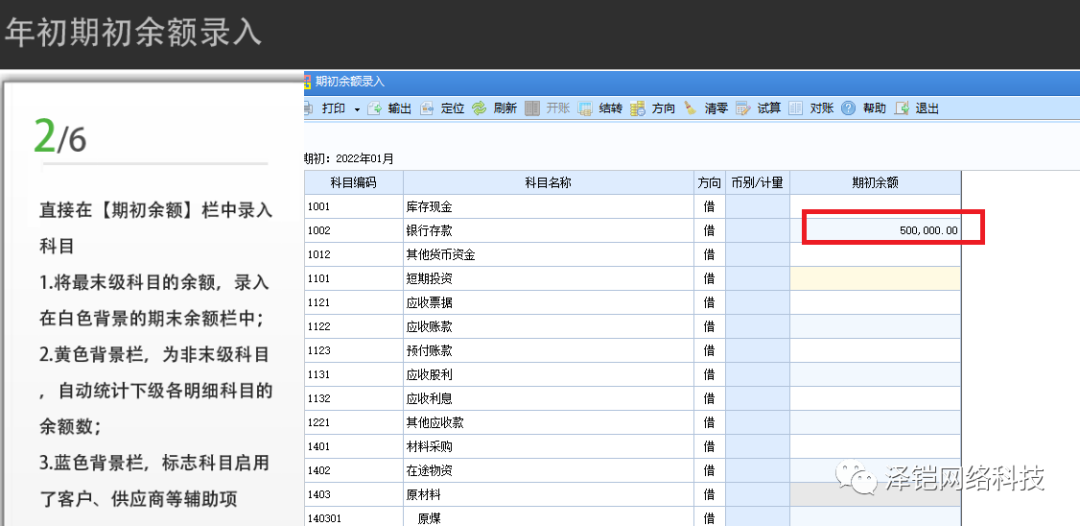 依次点击【总账】--【期初】--【期初余额】,将科目余额录入到相应的会计科目中。 注意:如果年中启用账套,涉及到本期间发生的累计借贷方数据可选择性录入,但是损益类科目需要录入累计借贷方,如果不录入的话,后期利润表的累计发生数就会取不到。 本文以用友U8软件建立账套,会计制度选择2013小企业会计准则为例: 在录入期初余额之前需要根据单位实际核算需要进行科目设置如下: ![]() 一、年初启用账套期初余额录入: ![]() ![]() ![]() ![]() ![]() ![]() 二、年中启用账套期初余额录入: ![]() ![]() ![]() ![]() ![]() ![]() ![]() 备注:年中建账科目期初要录入累计借方金额、累计贷方金额和期初余额(上月期末余额),年初余额(损益类科目除外)会自动反算。新成立的公司无期初余额。 该文章在 2024/9/10 12:14:03 编辑过 |