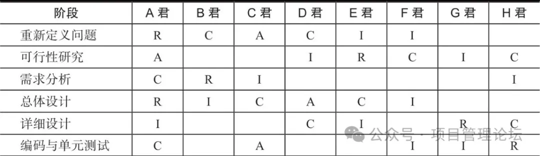 为了实现“三落实”,建立责任分配矩阵(responsibility assignment matrix,RAM)是很有帮助也是很有必要的。正确使用RAM可以明确项目活动负责人,确定每个人的项目责任,有效降低项目工作无人负责的风险。