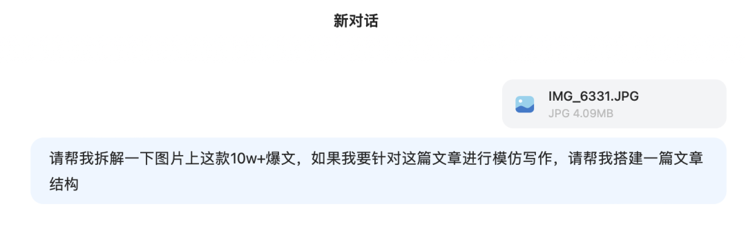 最近DeepSeek实火,让我感受到AI时代真的悄然而至。在当下这个时间点,自媒体博主去AI焦虑、抵制AI已经是无用的了,而要用开放的心态去学习AI,让AI能力成为我们的核心竞争力,才能在未来不下牌桌甚至越来越好。研究了一段时间DeepSeek,今天和大家分享公众号博主如何利用它,开启高效智能写稿工作,爆款频出:日常我们做账号都会有意识地收集一些爆款选题和文案,然后进行拆解模仿写作。有了DeepSeek之后,拆解和搭建文章结构的任务就可以交给它啦!今天需要它拆解的文章名称是:《牛!马斯克的读书方法太好用了,建议1:1模仿,如果能大量读书,你几乎可以学会任何东西》1️⃣把该篇爆文保存为图片形式