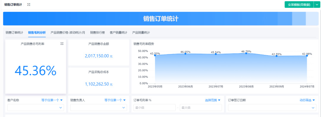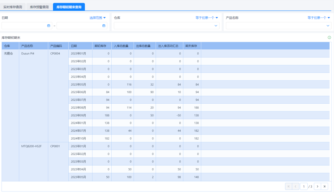 ![]() 举个例子,怎么计算? 假设你是经营服装店的,销售成本(也就是你卖出去的衣服的成本)是10万元,期初库存是5000件衣服,期末库存是3000件。 那么,先算出平均库存: 平均库存 = (5000件 + 3000件) / 2 = 4000件 接下来,用公式算库存周转率: 库存周转率 = 10万元 / 4000件 = 25次 这意味着,你每年大约能把库存“转”25遍,也就是说,你的库存卖得比较快,效率不错,资金也能迅速回笼。 ![]() 四、具体计算步骤 听起来库存周转率计算起来还是很简单的,但在实际情况中,库存的种类数量一多起来,库存周转率就没那么好算清了! 当然,我们也可以直接借助一些系统工具,自动计算库存周转率。 接下来给大家演示一下,库存周转率具体应该如何分析: ![]() 计算库存周转率需要使用 5 张表单,分别是: