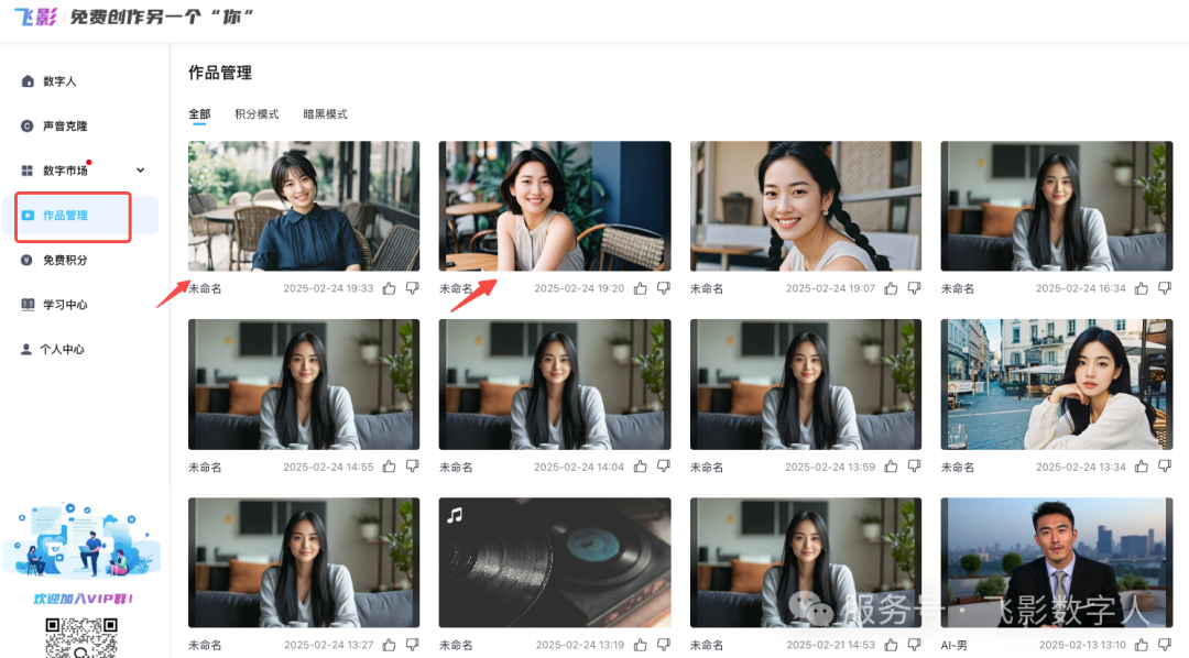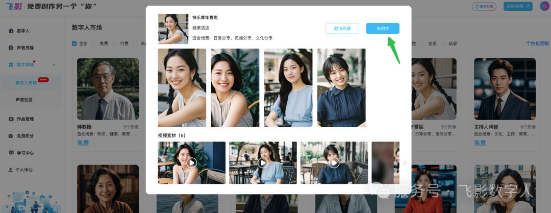 到此,文案部分搞定,直接拿来用,也就2-3分钟搞定了。(以上提示词和思路可以直接拿去用,加以变化和调整,基础文案都能搞定🤝) Step 2 让 飞影数字人 来一键生成视频(免费教程) 0成本体验教程: 选一个公共数字人(搞定形象)+ 选一个免费声音(搞定配音)+ 一键生成作品 首先,我们打开“飞影数字人”小程序或“飞影数字人” pc 网页版,以下使用“pc 网页版”为示例: 1.选一个公共数字人 a. 登录飞影数字人网页:https://hifly.cc