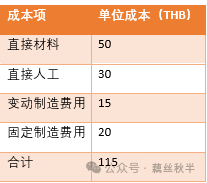 📌示例计算: 三、成本加成定价法 📌成本加成定价法(Cost-Plus Pricing) 是最常用的定价方式之一,它的核心公式如下: 售价=成本+成本×目标加成率 📝计算示例 假设某产品的单位成本计算如下: ![]() 如果公司希望获得30%的加成利润,那么最终售价为: 售价=115+(115×30%)=149.5THB。 📢如果客户反馈目标价为105泰铢时,是否接受订单? step1:计算客户目标价下的毛利情况 客户目标价:105THB; 单位产品成本:115THB; ❌结论:毛利为-10THB,订单亏损,不建议接受。 step2:进一步分析是否应考虑接受? ✅可能接受的情况: