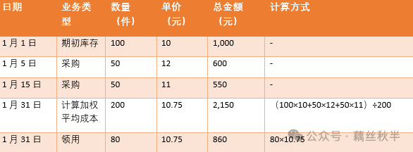 二、月末一次加权平均法 📌概念 月末一次加权平均法是按月计算存货单位成本,即月底统一计算当月存货的加权平均单价,然后用于计算当月的出库成本。 📌计算公式 加权平均单价(当月)=(期初库存总金额+本月采购总金额)÷(期初库存数量+本月采购数量) 📌适用场景 ✅适用于采购批次较少、价格波动较大的企业,如重工业、设备制造等行业。 📌举个栗子 ![]() 📌特点: