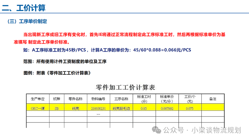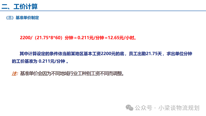 • 工价公式:单件工价 = 标准工时 × 单位时间工资基准;
