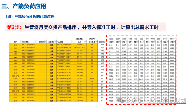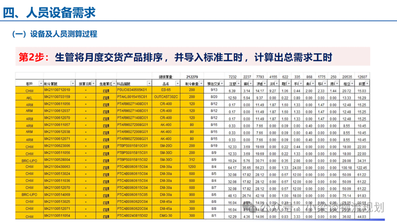 通过标准工时计算理论产能,对比订单需求,评估设备与人员的负荷率,识别瓶颈。