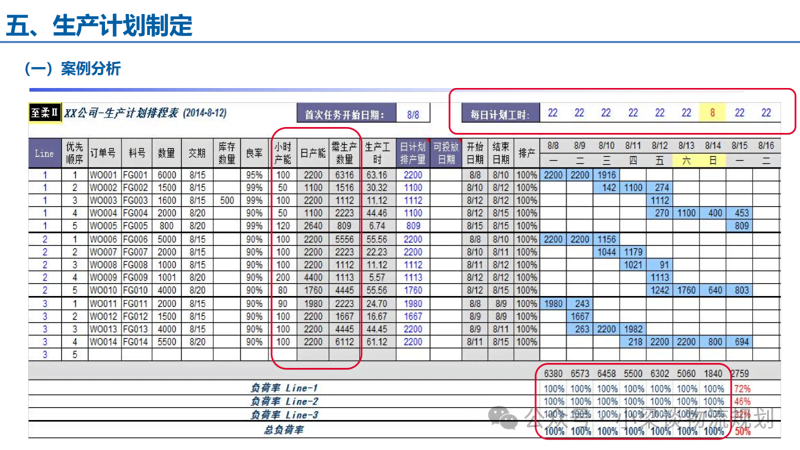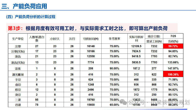 • 产能不足:负荷率>100%时,需增加班次、设备或外包;