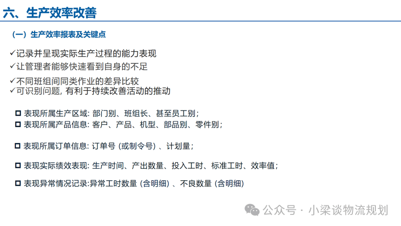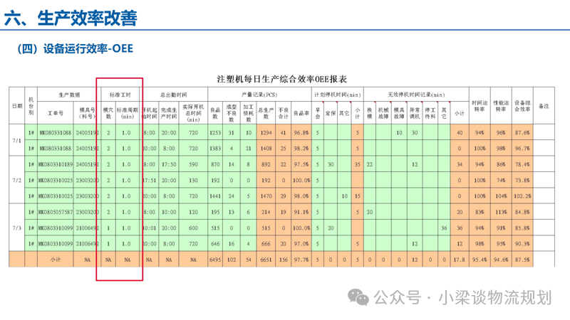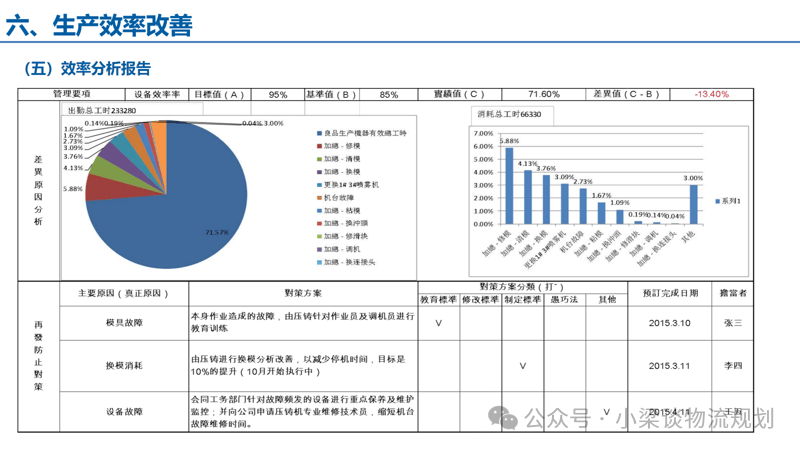 • 损失分析:效率<100%时,追溯原因(如设备故障、操作不熟练)。