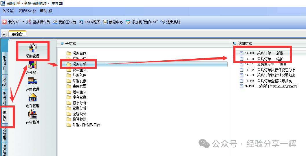 第二个方法,从主控台进入,(采购管理)——(采购订单)——(采购订单--新增/维护)