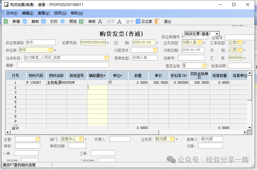 生成购货发票,(采购入库)流程到此结束。
