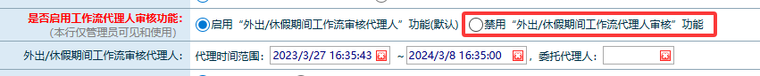 5、检查是否启用了代理人,设置-全体员工操作日志-选择“工作流维护操作”查询(日志久远可能会查不到):