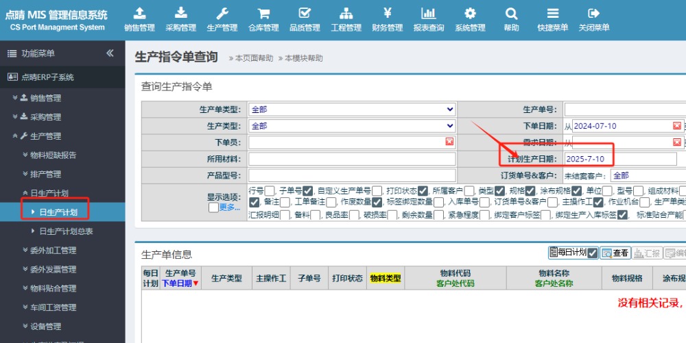 点晴模切ERP-日生产计划,如何按计划日期显示当天需要生产的工单
