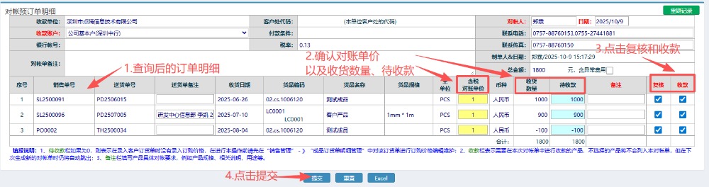 接着会跳转到另一个页面,选择对应单据然后点击复核,最后点击“对账收款单结案”。 注:有需要可以进行打印或者导出excel ![]() 点晴模切ERP更多信息:https://moqie.clicksun.cn,联系电话:4001861886 该文章在 2025/10/9 16:16:35 编辑过 |