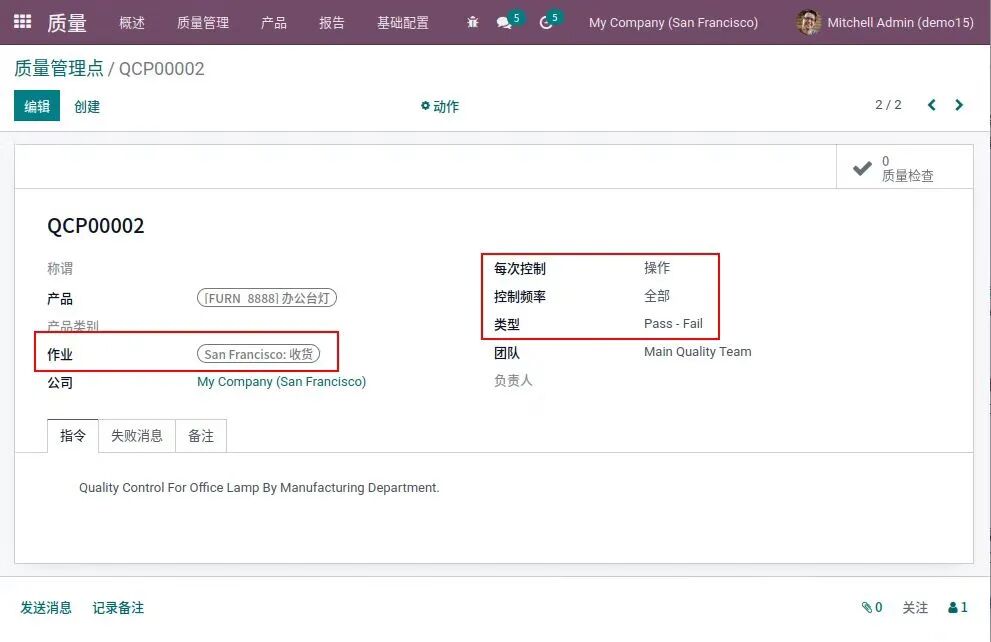 2、质量控制 质量控制系统可以在质量出现问题时准确定位,从而帮助企业在整个供应链中执行质量标准。 通过控制点设定质量指标,可针对制造的特定作业,例如组装和材料处理,也可用于物流作业,例如进出货。每个控制点可选择不同的控制类型,例如测量、通过-失败测试等。设置控制点的检查频率和自动化。因此,企业可在收货后立即验证其质量,确保在整个制造过程中遵守协议,并确保最终产品在发货前符合标准: