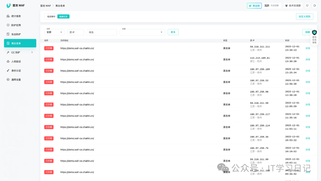 简介SafeL是一款开源免费的自托管Web应用防火墙(WAF),旨在为Web应用服务提供一层安全防护屏障,可有效防御各类非法恶意攻击。它提供了访问频率限制、人机验证、动态防护等核心功能,通过过滤和监控Web应用与互联网之间的HTTP流量来保护Web服务,可有效抵御各类SQL注入、XSS、代码注入、命令注入、CRLF注入、ldap注入、xpath注入、RCE、XXE、SSRF、路径遍历、后门、暴力破解、CC、爬虫等攻击,保护用户资产不受侵害。 SafeL的防护效果不仅仅只是纸上谈兵,截止目前为止,在全球装机量已经超过30万台,日均处理300亿次请求,检出率76.17%,误报率仅0.22%。 它支持容器化部署(Docker 、Docker-compose)和自有服务器部署2种方式,用户可基于需求灵活选择,作为自托管WAF,用户可对流量、日志、配置完全掌控,不依赖任何第三方SaaS,适合对数据隐私、安全性有较高要求的个人和团队,可应用于个人网站、企业网站、企业各类服务,大型Web应用等多种场景。