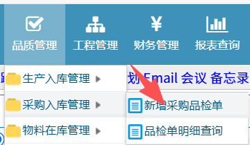 操作步骤:品质管理-新增采购品检单
