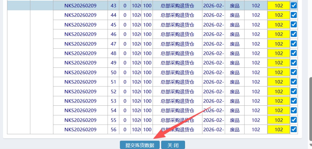 勾上对应的库存,点击“提交拣货数据”按钮