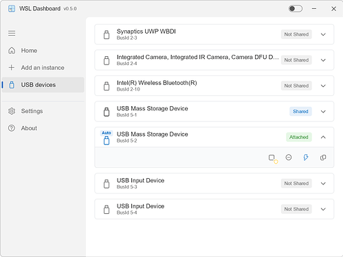 如果你愿意一起把 WSL 的体验做得更“像一个现代工具”,那我们就很适合一起做这件事。 新版本v0.5.0 功能预告:USB设备管理(基于usbipd-win将windows系统插入的usb设备,提供给WSL2中的linux使用) 该文章在 2026/2/28 18:47:17 编辑过 |