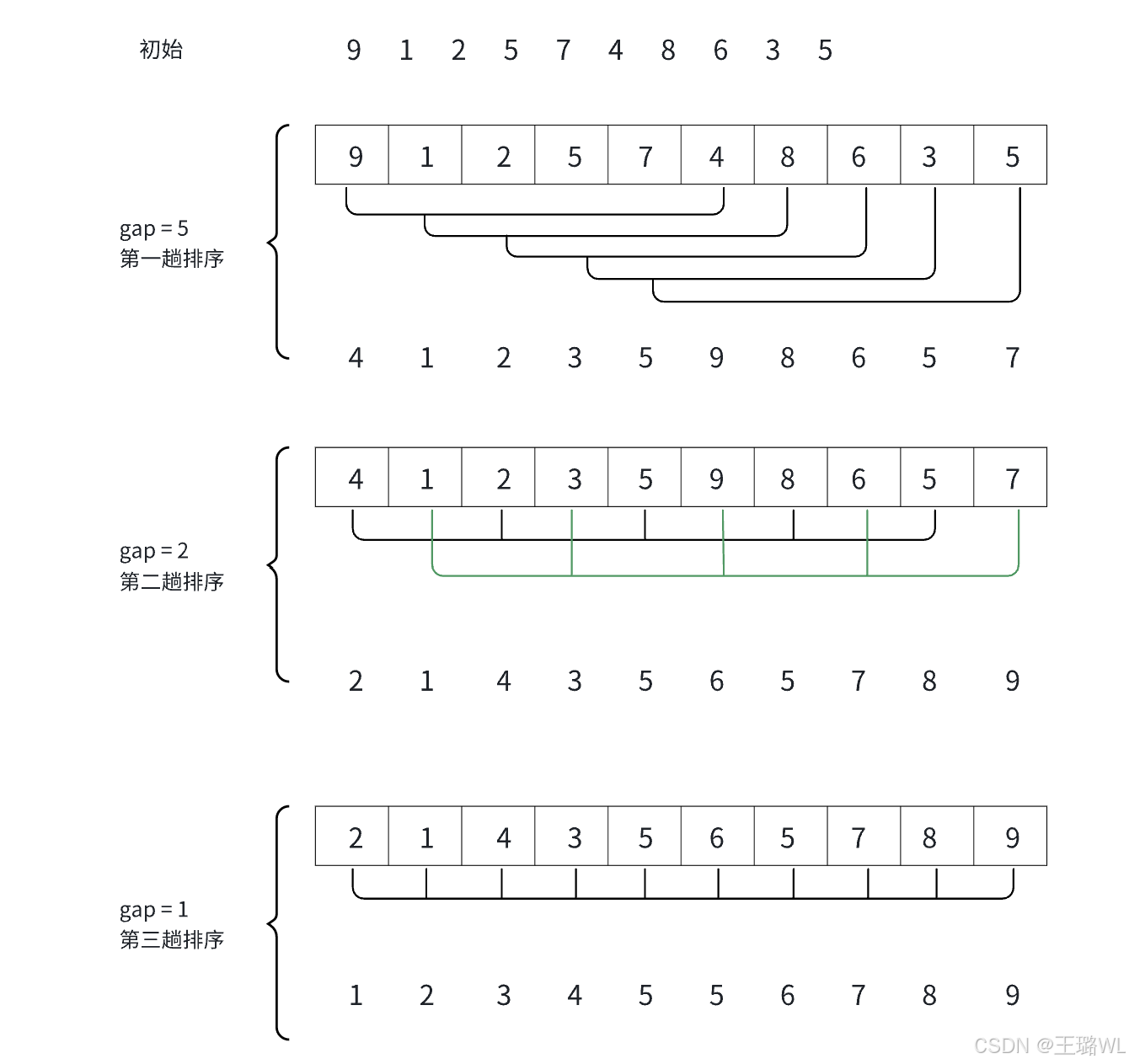 - 当 gap > 1 时都是预排序,⽬的是让数组更接近于有序。当 gap == 1 时,数组已经接近有序的了,这样就会很快。这样整体⽽⾔,可以达到优化的效果。
