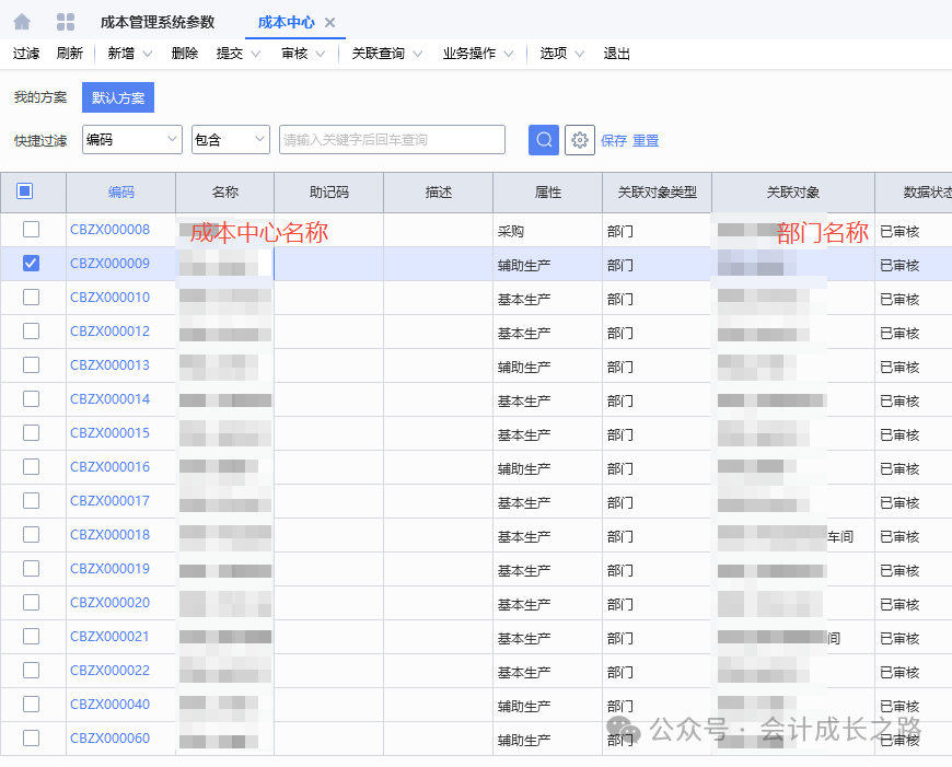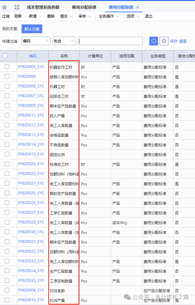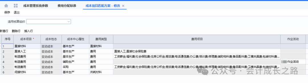 根据组织架构来设置部门:总经办、人事部、财务部、销售部、采购部、质量部、技术部、研发部、仓储部、生产部、各生产部门(根据工序、是否委外、是否需要入库,工期长短、物理位置等因素确定)。例如以下工序分成本中心(工序数据来自保隆汽车股票招股说明书):外购件经过自动线产线组装产品,设置一个传感器车间即可。3、成本中心根据属性(辅助生产、基本生产)关联部门。比较常用的有工时分配(机器工时、人工实际工时、标准工时)、定额分配、完工入库数分配;根据公司特征选用。- 机器工时:自动化高、设备贵、折旧多,费用主要跟机器有关。